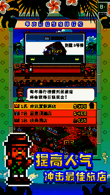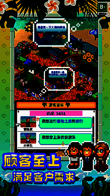 得益于简洁直观的操作设计,南国度假岛物语适合各年龄段玩家轻松上手。支持横竖屏自由切换,适配不同使用习惯。其像素画风温馨可爱,背景音乐舒缓放松,搭配丰富的成就系统与持续更新的任务内容,让玩家在碎片化时间中也能享受完整的经营乐趣。无论是打造网红打卡点,还是实现商业帝国梦想,这座小岛都承载着无限可能。