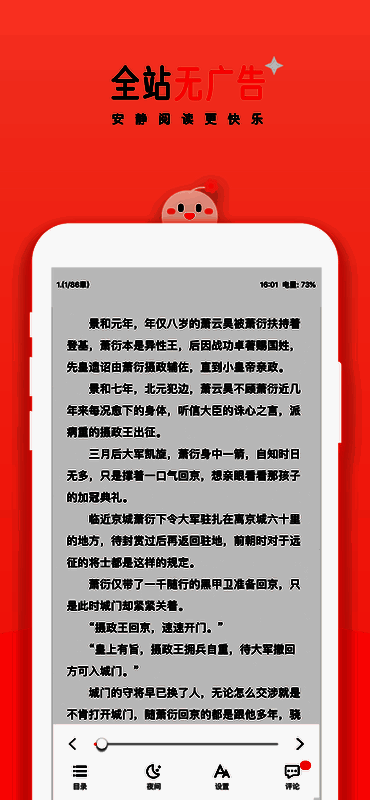 每本小说均设有专属评论区,读者可自由发表读后感,与其他书友互动交流,形成活跃的阅读社区氛围。应用全站采用无广告设计,彻底杜绝弹窗干扰,为用户打造纯净、沉浸式的阅读环境。此外,专业编辑团队为每部作品撰写精准简介,帮助用户快速判断内容风格,高效筛选心仪读物。