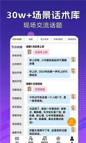 除了恋爱场景,甜瓜输入法还拓展至相亲、婚姻咨询、情感修复等多个现实应用场景。针对不同人群和关系阶段,提供专业级沟通策略,例如“如何向父母介绍对象”“夫妻冷战如何破冰”等实用话题。这种全场景覆盖的设计,使其不仅仅是一款恋爱辅助工具,更是现代人情感管理的智能伙伴。