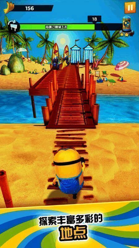 从阳光沙滩到熔岩洞穴,从时空隧道到激光密室,游戏精心还原了《神偷奶爸》系列中的多个标志性场景。每个关卡都经过细致打磨,视觉风格鲜明且动态效果逼真,让玩家仿佛置身于电影世界之中。同时,障碍设计极具挑战性——高速飞行的无人机、密集的激光网、突如其来的陷阱机关,都需要玩家精准操控才能顺利通过。不断突破极限,才能在奔跑中脱颖而出。