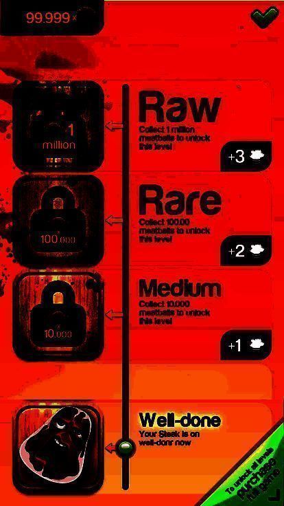 游戏设计了四种不同成熟度阶段——一分熟、三分熟、五分熟与全熟,每个阶段不仅代表牛排的“状态进度”,更对应不同的互动内容与挑衅台词。随着“烹饪”深入,查理的语气愈发激烈,动画表现也更加夸张,形成一种诡异又上瘾的游戏节奏。玩家可在无时间限制的自由模式中反复挑战,尝试解锁所有反应与结局。