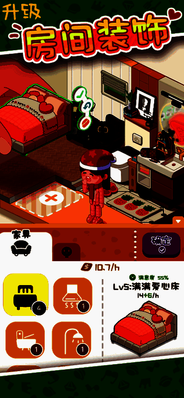 房间的装修程度直接决定租金水平和吸引力。从地板、壁纸到家具搭配,玩家可自由设计每个房间的风格,打造北欧风、田园风、现代简约风等多种主题空间。精心布置的房间不仅能吸引优质租客,还会触发特殊事件与好感度提升,带来意想不到的剧情发展。这种“看得见的成长”让玩家在经营中收获满满的成就感。