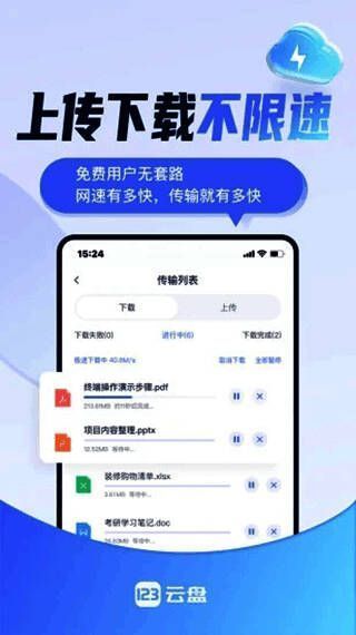 1.免费不限速是123云盘的一大特色。很多网盘应用在提供免费服务的同时,会对用户的下载和上传速度进行限制,严重影响了用户的使用体验。而123云盘则打破了这一常规,即使是免费版用户也能享受到满速下载和上传的极致体验。这意味着用户可以随时随地快速上传和下载文件,无需担心速度问题。