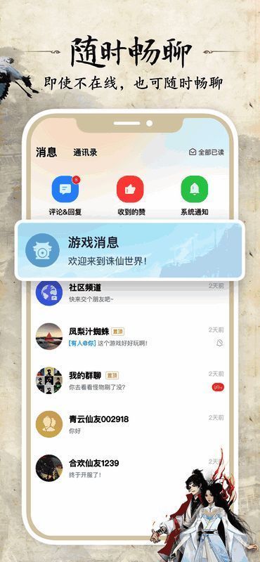 除了个人预约功能,诛仙世界助手还设有玩家社区模块,支持实时聊天与经验分享。在这里,志同道合的修真者可以组建预约小队、交流剧情猜想、讨论职业搭配,提前构建社交关系网,为正式开服后的团队副本与跨服征战打下坚实基础。