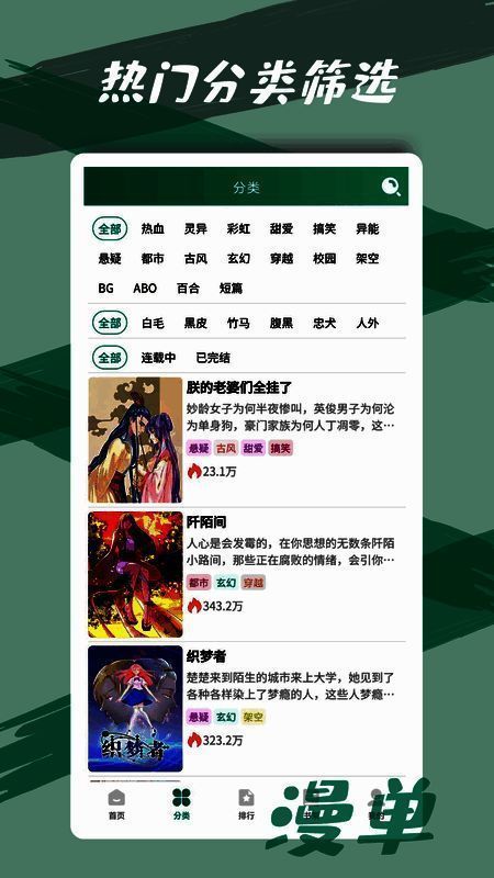 基于用户的浏览历史与兴趣标签,漫单漫画能精准推送符合口味的新作与冷门神作。所有漫画均按题材、风格、热度等维度清晰分类,涵盖恋爱、玄幻、校园、科幻等多种类型,帮助用户快速定位目标内容。同时,平台支持社交分享功能,用户可将喜欢的作品一键转发至微信、微博等社交平台,与好友共享精彩剧情。