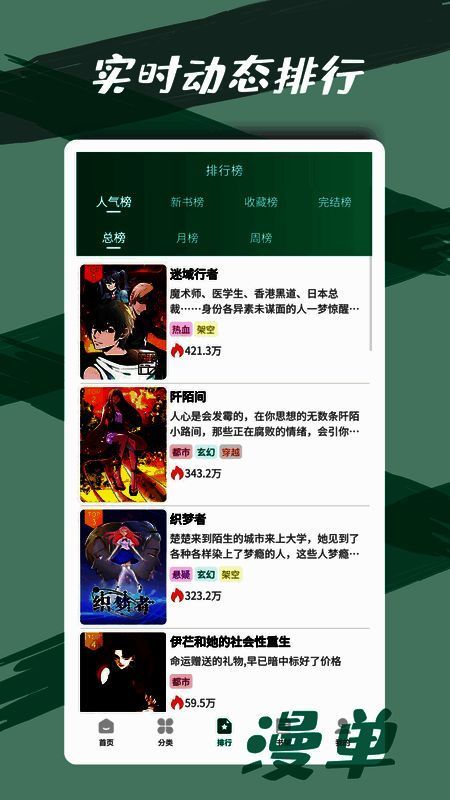 漫单漫画是一款专注于为漫画爱好者提供海量正版资源的移动端阅读平台。凭借每日实时更新的丰富内容,它迅速在二次元圈层中积累了极高人气。无论是热血少年漫、浪漫少女绘,还是悬疑推理、奇幻冒险,用户都能在这里找到心仪之作。平台最大的亮点在于其独创的“实时动态排行榜”,通过综合点击率、阅读量与更新速度等多维度数据,智能轮换榜单内容,让优质作品持续曝光,帮助用户轻松发现热门佳作。
