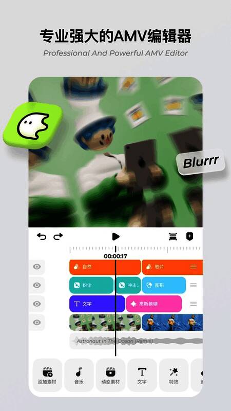 作为由AMV和MAD共同打造的编辑平台,Blurrr在特效处理方面表现尤为突出。模糊效果、单帧偏移、动态叠加等功能一应俱全,即便是复杂的专业级效果也能轻松实现,让创意无限延伸。