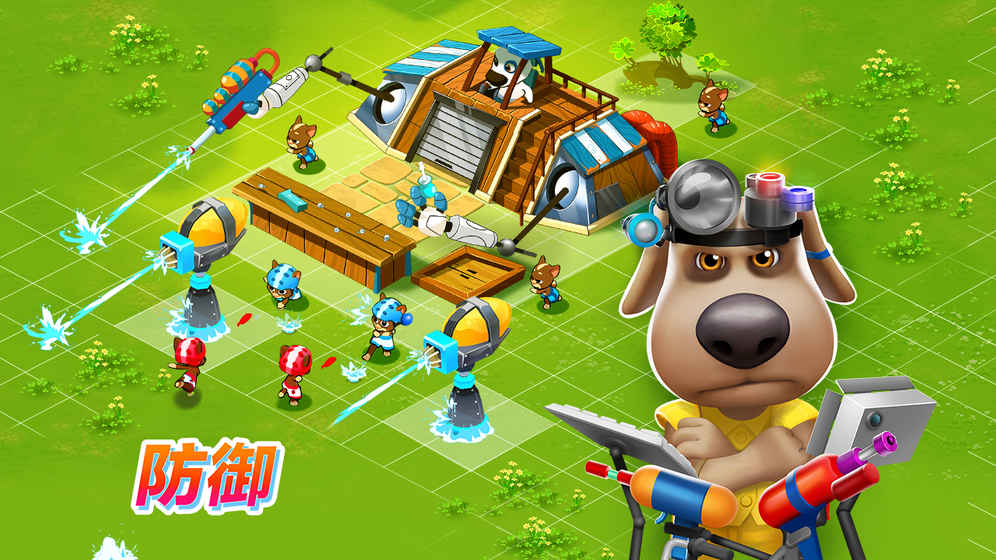 游戏打破传统塔防框架,创新性引入“水战对抗”机制。玩家不仅可部署喷水器、水炮等趣味防御设施,还能亲自操控汤姆猫使用水枪、投弹器冲锋陷阵。结合滑翔衣空袭、水坑陷阱等多样化战术元素,实现攻防一体的立体战斗体验。此外,全新v1.5.37版本上线“能量系统”,新增“能源站”与“能量库”建筑,资源管理策略进一步深化。