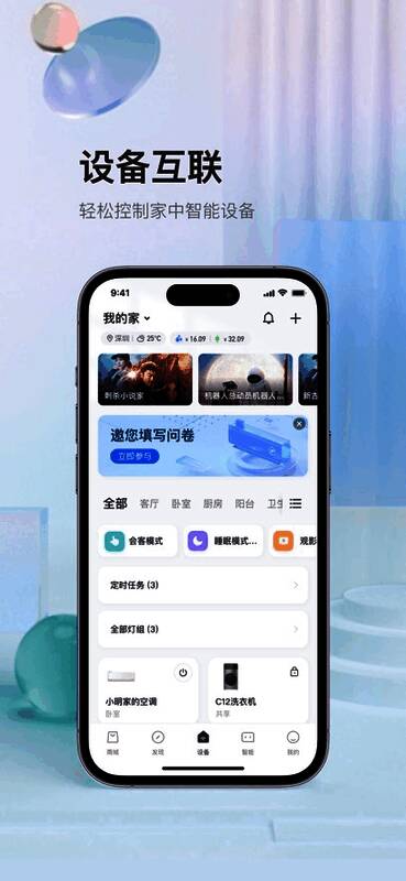 TCL APP提供多维度的智能生活解决方案,涵盖从生活信息获取到智能设备管理的全方位功能。用户可以根据不同需求自由切换离家模式、观影模式或睡眠模式,并支持自定义添加触发条件,构建专属的智能场景。这种高度个性化的设置方式,让用户能够真正掌控自己的家居环境,实现更高效、舒适的生活体验。