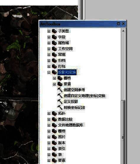 5、然后再找到投影和变换工具——要素——定义投影