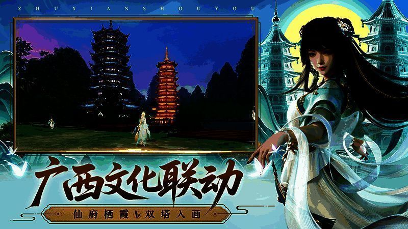 广西文化深度联动:仙府栖霞,双塔入画