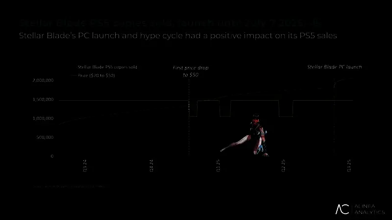 而当《剑星》于2025年6月11日登陆PC Steam时,仅用三天就售出超过100万套,起步速度远超PS5版。也正是这次PC版的发售,使得本作全平台总销量突破了300万大关。