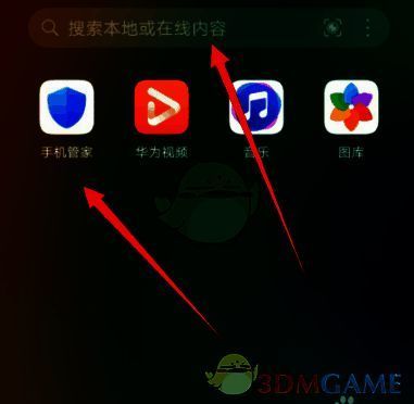 1、如果在手机桌面上没有找到手机管家,可以滑动打开搜索栏。