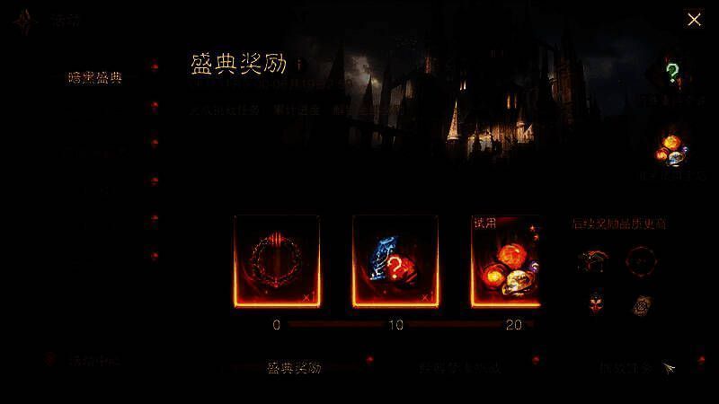 首次挑战成功每位魔神,可获得奖励神秘传奇装备1件。还可完成“暗黑盛典”中的挑战任务,累计盛典奖励进度。
