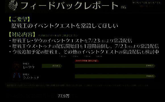 ·官方还表示正在考虑将将今后预定上线的其他历战王挑战以及其他事件任务更改为常设任务,敬请期待后续消息。