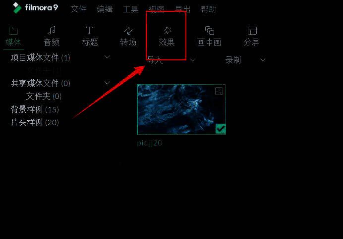 然后点击上方的【效果】。