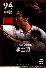 2005年的东亚赛场上,李金羽的出色发挥帮助中国队战平日本,并问鼎最终的冠军!比赛的第36分钟,边路队友传球稍稍靠前,“大羽”加速冲刺甩开贴身防守用一记精彩的头球帮助中国队首开记录!自带【炮弹式头球】特殊技能的双增能决胜史诗 李金羽将在《实况足球在线》赛场上展现他全面的进攻天赋!