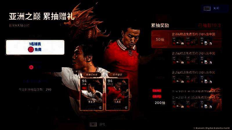 也就是说,球星们通过登录就可以免费获得50次中国传奇的抽取机会!