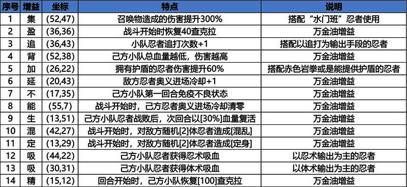 b.具体获取到的增益取决于小队的探索路线和忍者学员所使用的阵容;