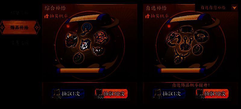 2、优先在“自选补给”里进行抽取,将常用的几套饰品抽取出来使用;