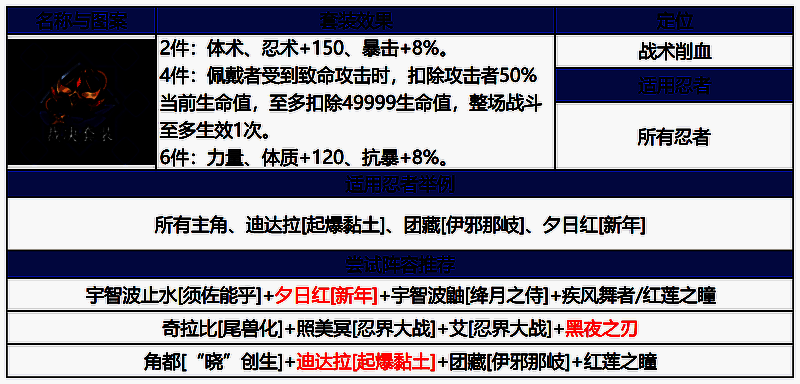 c.以上仅供参考,具体请以自己所拥有的忍者和饰品进行搭配。