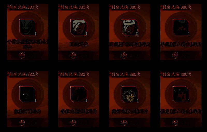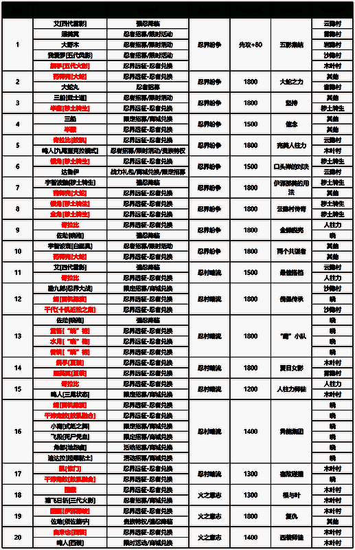 d、远征忍者图鉴收集图中,标红的忍者可通过忍界远征里的忍者兑换获得;