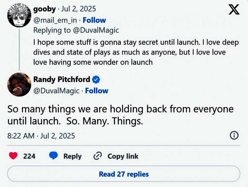 Pitchford回复说:“我们确实还有太多东西没有对外公布,等着发售那天再揭晓。真的太。多。了。”