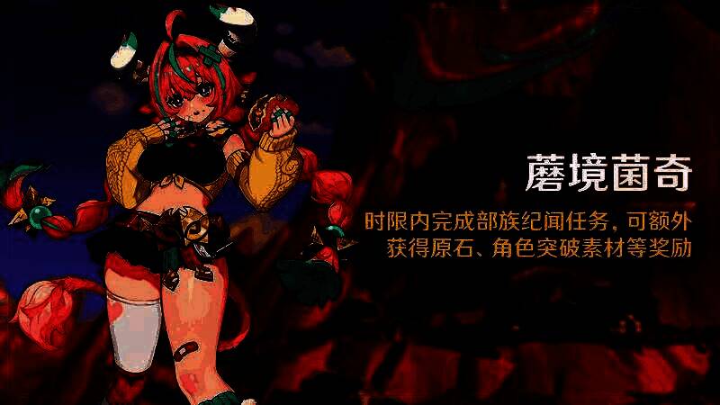 部族纪闻任务「蘑境菌奇」现已开放,旅行者达到对应的冒险等阶,且完成相应的前置任务后可解锁「部族纪闻·流沃陆之邦」。在时限内完成任务,可额外获得原石、角色突破素材、角色培养素材、纳塔区域特产等奖励。
