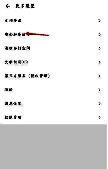 2、之后在更多设置功能页,选择【安全和备份】功能;