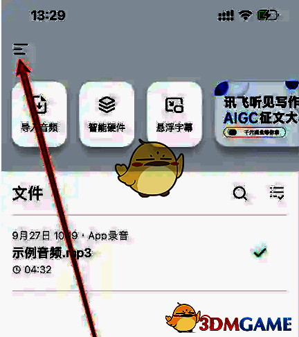 1、先打开讯飞听见APP进入,点击左上角的图标