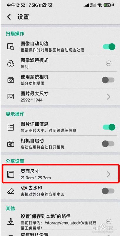扫描全能王尺寸大小设置教程: