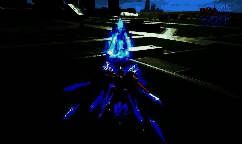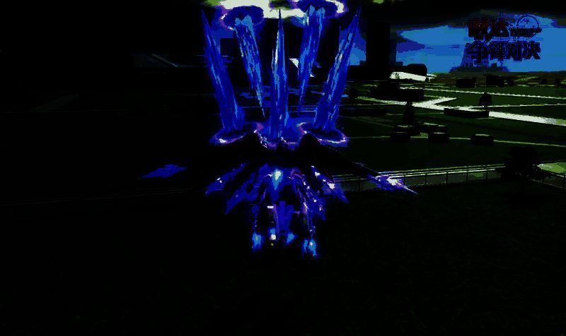 【必杀技】按下必杀键。快速上升至空中并进入结晶形态,召唤来自其他次元的光束武器对目标进行照射攻击,命中地面或障碍物会产生暴风。