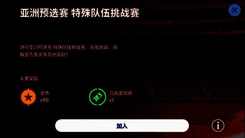战胜【亚洲预选赛 特殊队伍挑战赛】中的对手,你将赢得【金币】和【高光定向券】作为奖励。完成更多阶段任务,可以获得更丰厚的奖励!你需要挑战多位强敌,才能成为最终的胜者!