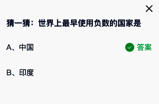 1、猜一猜:世界上最早使用负数的国家是