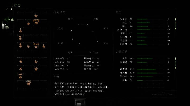 在游戏中,玩家所做的每次选择都会被游戏所记录,通过游戏中一个类似MBTI性格测试的内置系统,游戏将把玩家的行为倾向细化成多种类别,同时换算成玩家角色的属性加值。