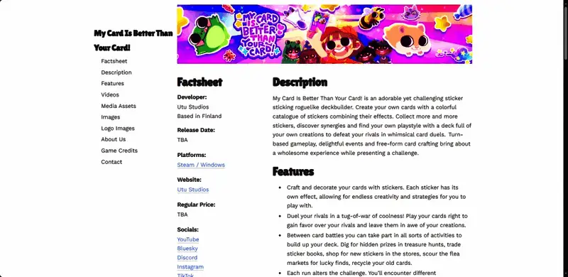 《我的牌更好!》是一款充满创意与策略深度的Roguelike卡牌游戏。而这款游戏的官网地址就是一个官网页面,另外Steam平台的购买页面也算官网,进入到这个游戏的购买页面基本上就能知道所有这款游戏的信息。