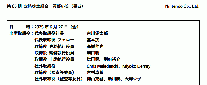 ·其他任天堂还回答了股东们关心的关于游戏开发费用不断走高的问题、新硬件的价格设定、如何更加想儿童普及等等。