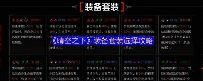 《晴空之下》装备套装选择攻略