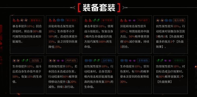 简单总结来说,大部分攻击角色都是无脑2红2黄加强输出和破甲能力,或者2红2绿战斗后回血,适合用在集中培养的大C身上,既能打又能扛。