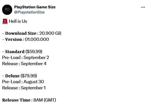 根据PlayStation Game Size在社交媒体上首次分享的信息,《地狱即我们》的文件大小将为20.9GB。这是指游戏的 1.0 版本,公告中并未提及可能存在的首日补丁是否会增加文件大小。