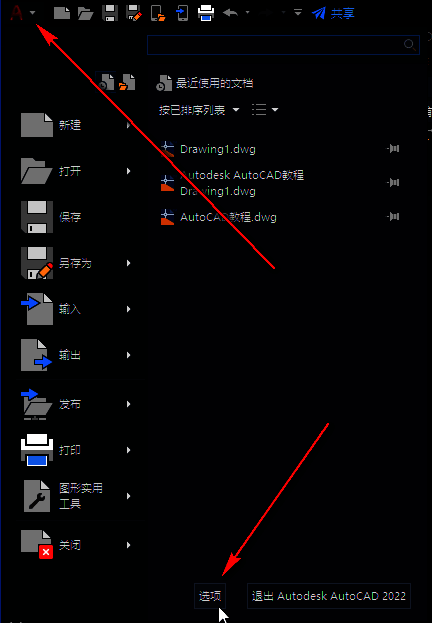 1、双击打开软件,点击左上角的软件图标,接着点击下方列表中的"选项"。