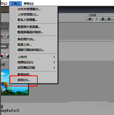 1、双击打开软件,点击上方菜单栏中的"工具",接着点击下方列表中的"选项"。