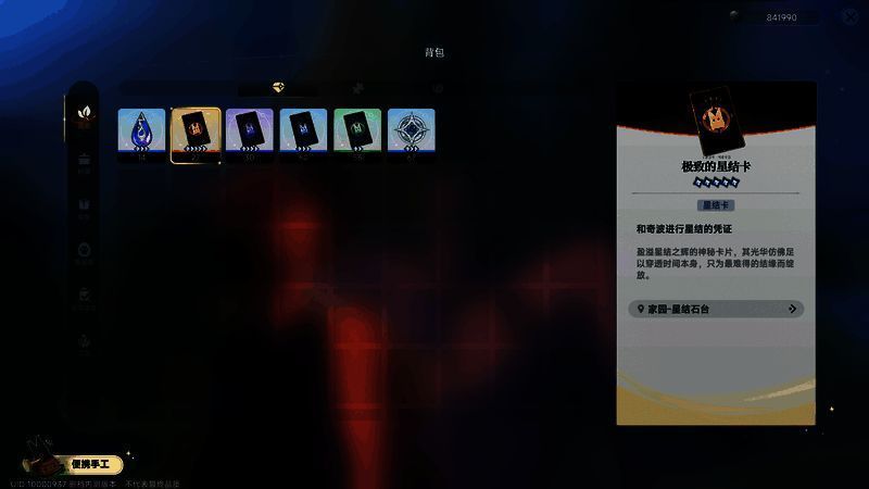 星界卡:5种稀有度,越高代表捕获成功率越高,同时也越难获取,低稀有度的星界卡可以通过随身的工作台直接制作。