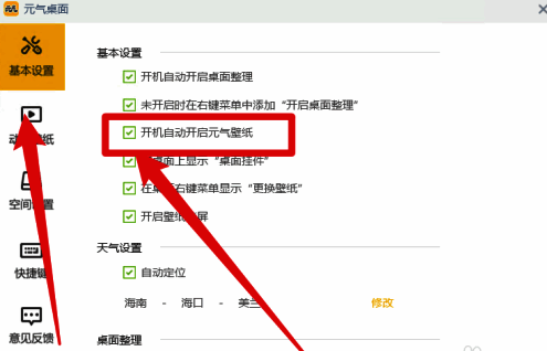 2、在打开的窗口界面中,点击左侧栏中的"基本设置",然后找到右侧中的"开机自动开启元气壁纸",最后将其小方框给勾选上即可。