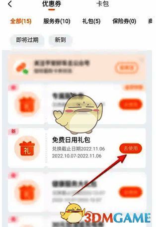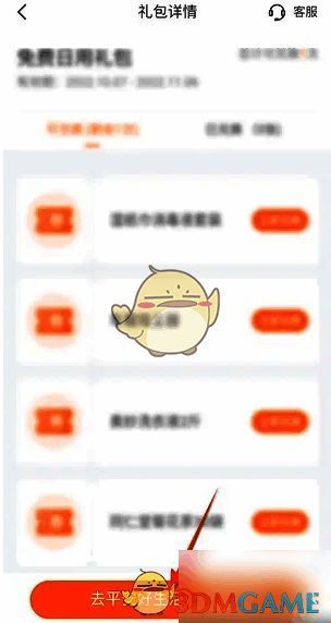1、打开平安好生活,选择免费日用礼包点击去使用。