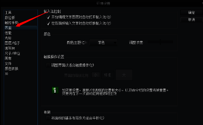 2、在打开的窗口界面中,点击左侧栏中的"界面"选项。