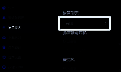 4、然后找到右侧中的"语音聊天",点击选项框的下拉按钮,将其选择为"打开"。