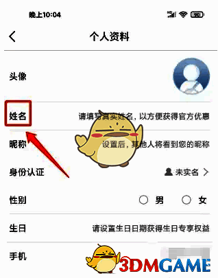 3、进入个人资料,点击【姓名】。