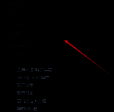 3、然后点击选项框的上下按钮,最后在给出的列表中选择"全屏"即可解决问题。