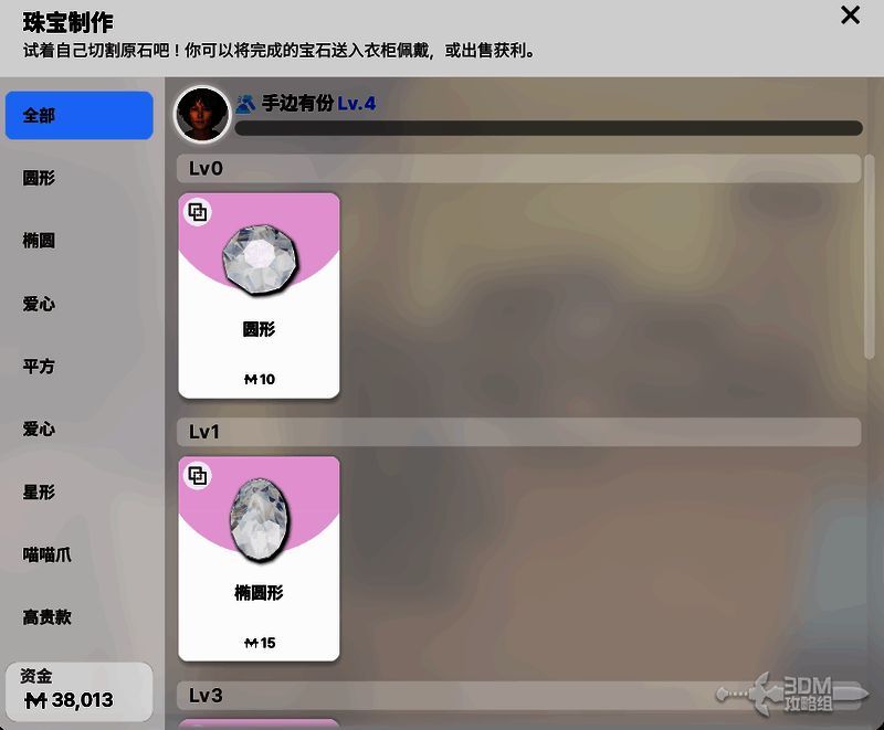 然后会根据手边有份的等级,可以制作不同形状的宝石。